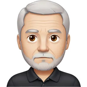 Senior version of Marian Pabón with defined facial structure, light pinkish skin showing age, almond eyes, arched eyebrows, charismatic wide smile, short spiky white-gray hair, more pronounced aging features, wearing a formal white buttoned shirtemoji