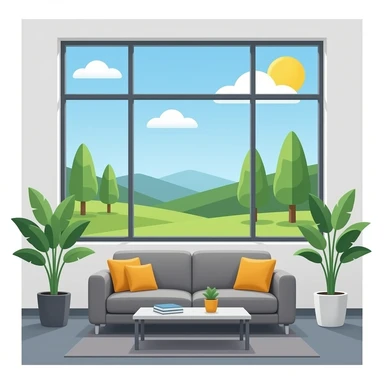 hazme una foto en una oficina donde haya un sofá i una vantana emoji