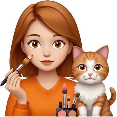 A image of a girl with light brown hair doing her makeup with her cat emoji