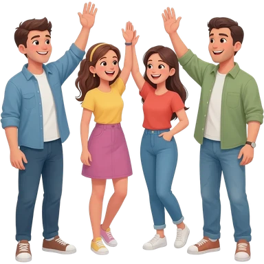 Three belugas arranged in a tight group, facing each other. Their flippers mid-air, touching like a team high-five. Expressions: smiling, full of joy and camaraderie. Soft, rounded design with that classic emoji-style charm—big eyes, gentle curves, and subtle shading. Transparent background so you can use it anywhere. emoji