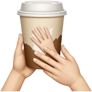 una mano con un bicchiere di carta con dipinto sopra le mani della creazione di adamo emoji