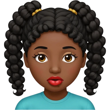 emoji sucking its lips in with one eyebrow up and the other one down dark skin and curly hair in a ponytail emoji