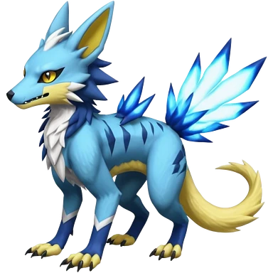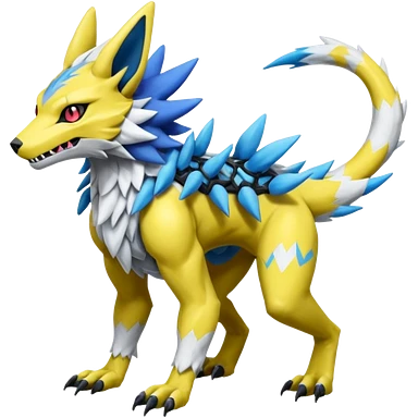 Sergal-Protogen-Trico-Renamon-Lombax-Zeraora-Vernid-fusion-hybrid-creature, drawn in a Pokémon/Digimon style emoji