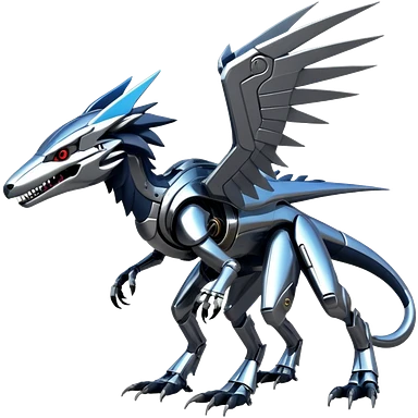 Futuristic Mechanical Sergal-raptor-nargacuga-vernid, 4 legs, full body emoji