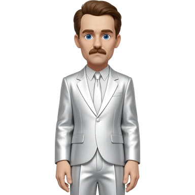 Sergei Eisenstein with blue eyes, brown hair, white metallic suit jacket and tie, white metallic baggy pants emoji