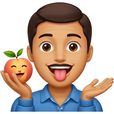 Generate me a dude clapping a peach with his tongue out happily emoji
