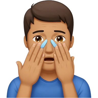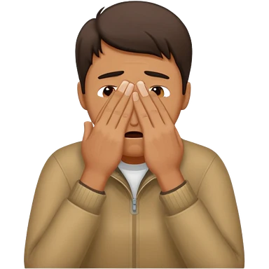 Generate me a dude covering his face with one hand on annoyance while he's crying emoji