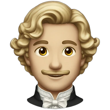 An emoji portrait of a French aristocrat. He wears a powdered wig and a silk waistcoat with a ruffled jabot. His expression is poised and refined, and he holds a fan. emoji