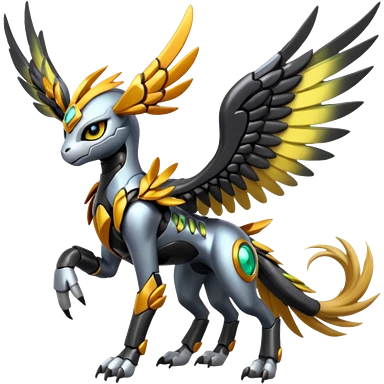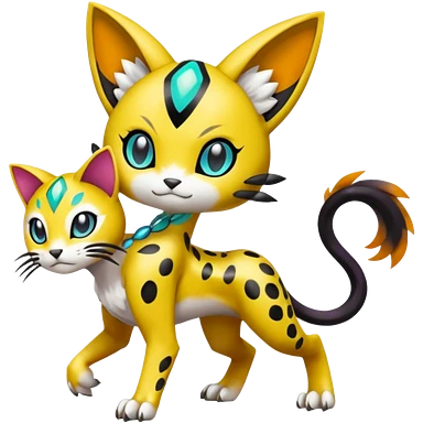 Colorful Meloetta-Bolthund-Renamon-Wargreymon-Sergal-Pokémon-Digimon-Fakémon-fusion-hybrid-creature emoji
