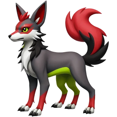 Hyper realistic skeletal black and neon green and neon yellow Zangoose-Lycanroc-Zorua-Litten-Houndoom-Fakémon-Pokémon-Digimon-hybrid-fusion (full body) emoji