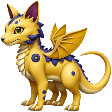 Golden-mustard-beige-yellow-gradients-colored, with black rosette-splotches, scaley Bastet-Liepard-Noibat-Gatomon-Garchomp-Digimon-Fakémon-Pokémon-creature (full body) emoji
