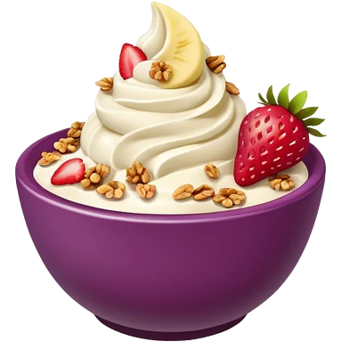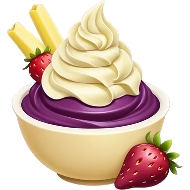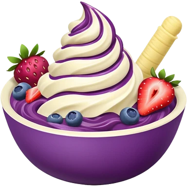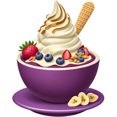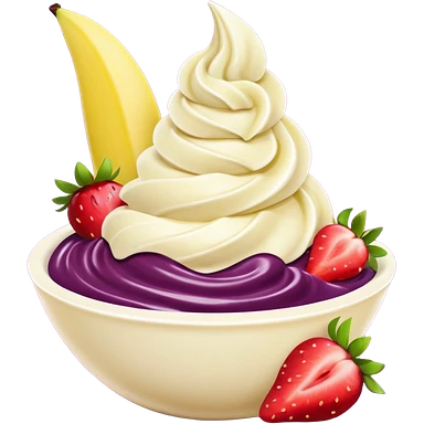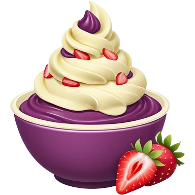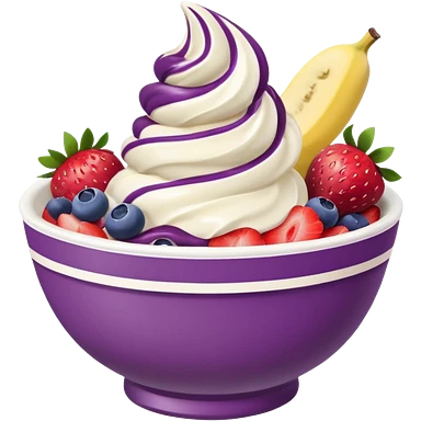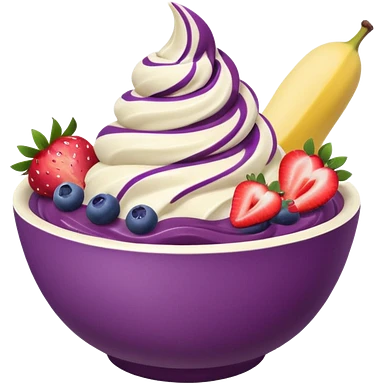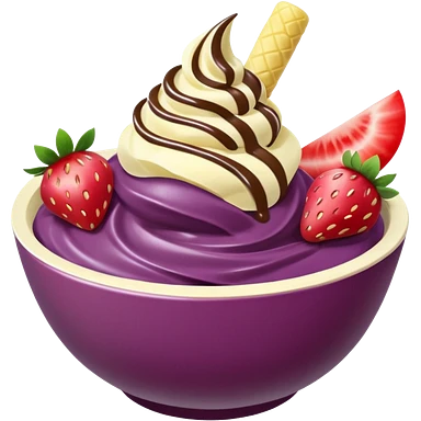 acai purple soft serve in a bowl strawberries and chopped banana emoji