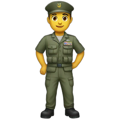 A soldier in military uniform, wearing camouflage, helmet, and boots. Holding a rifle or standing at attention, embodying strength, discipline, and service emoji