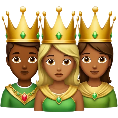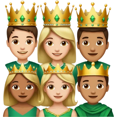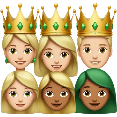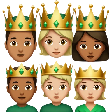Several people with a crown that unites them with golden and green colours emoji | AI Emoji Generator