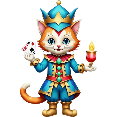 crazy colorful cute little cat jolly joker from poker, medieval, vintage, court jester, mac os icon, blue color, full body emoji