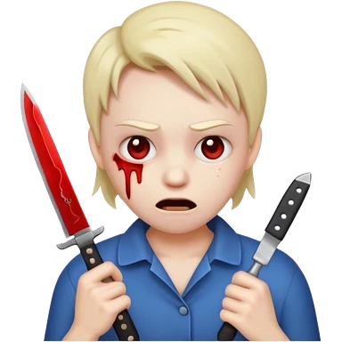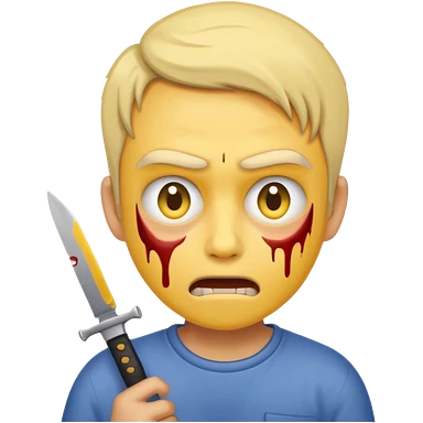 Insane scared injured yellow emoji person with a knife in the classic emoji style emoji