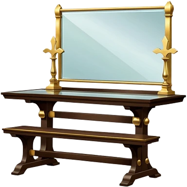A glass topped rectangular trestle table with 2 side benches and 2 thrones at the ends emoji