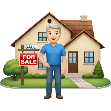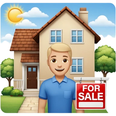 emoji de bienes y raices, un hombre y una casa en "venta for sale" sin sol emoji