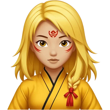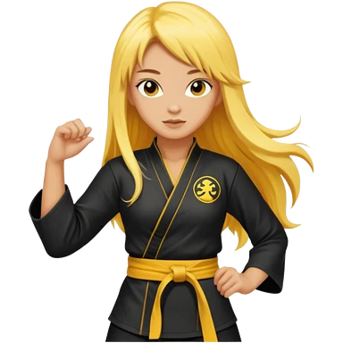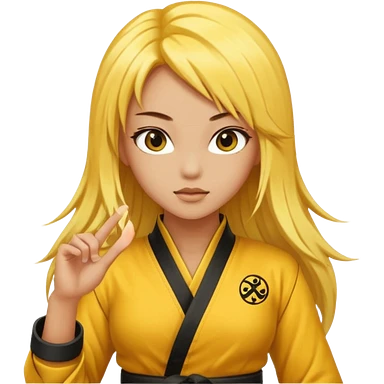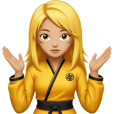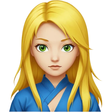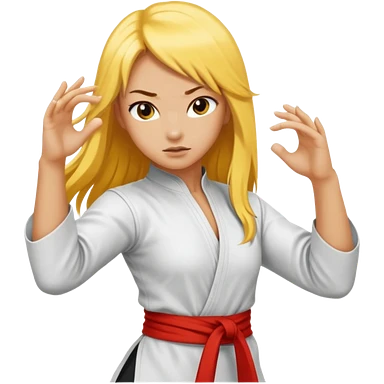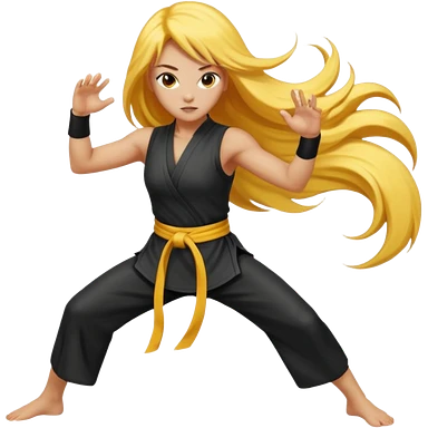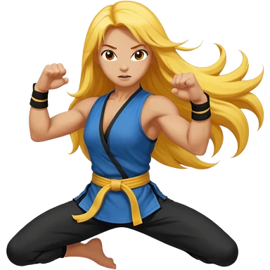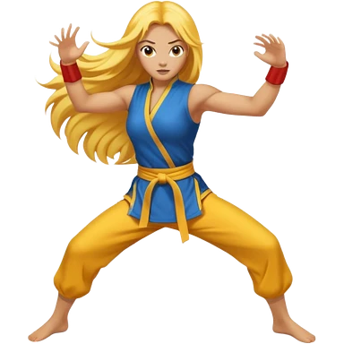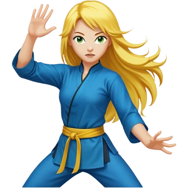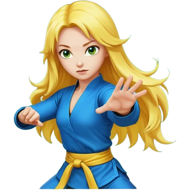 sexy girl with long yellow hair, kung fu, blue green eyes emoji