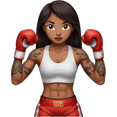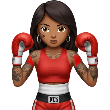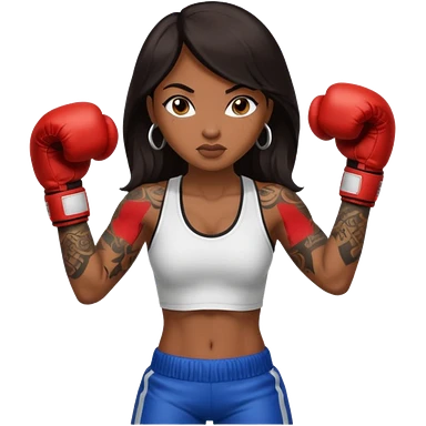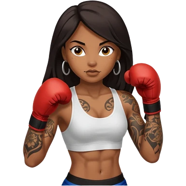 sexy brown skin girl with long dark hair, tattoes, muscles boxing emoji