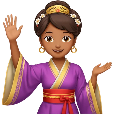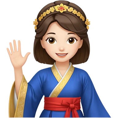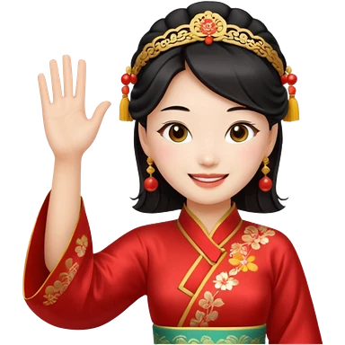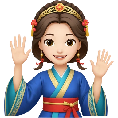sexy brown skin girl in hanfu clothes waving to greet emoji