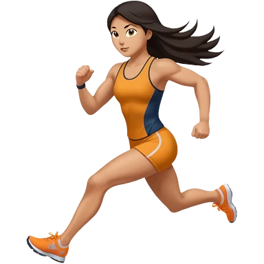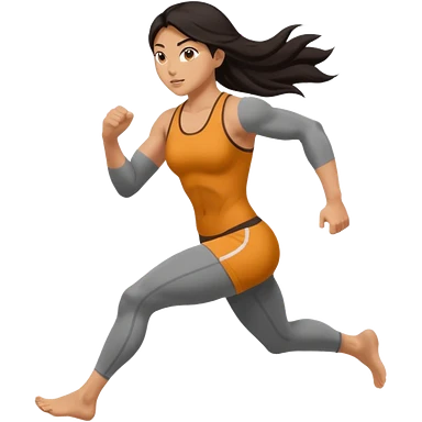 sexy and fully nude, asian muscled girl with long dark hair, running, nude feet emoji