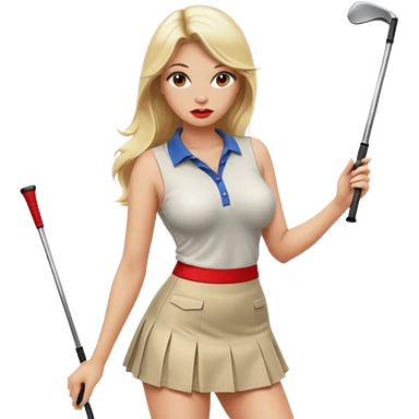Sexy blond female. Long hair. Red lips. Big boobs. Naked boobs. Short skirt. Playing golf. Sexy pose emoji