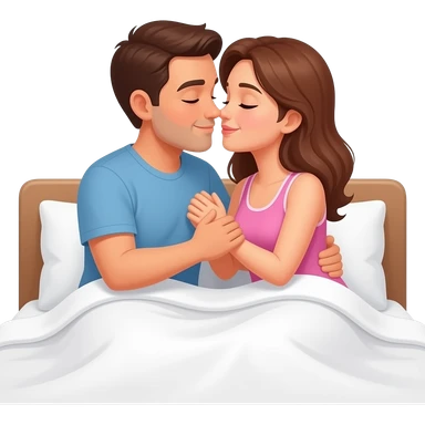 naked mixed man fucks naked woman. Botha of them are having sex on the bed. Action is showed in full height emoji