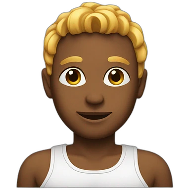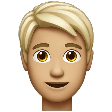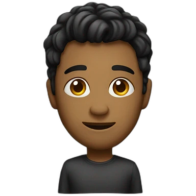 Sexe masculin. Cheveux brun foncé clair, bouclés, qui descendent jusqu'aux oreilles. Teint clair. Yeux marron vert. Visage ovale avec un léger bouc. Expression légèrement sérieuse avec sourcils froncés. Ajoute des AirPods. emoji