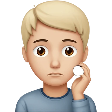 Sexe masculin. Cheveux brun foncé clair, bouclés, qui descendent jusqu'aux oreilles. Teint clair. Yeux marron vert. Visage ovale avec un léger bouc. Expression légèrement sérieuse avec sourcils froncés. Ajoute des AirPods. emoji