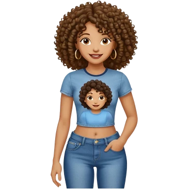 A black woman with curly hair with a penis print showing in jeans emoji