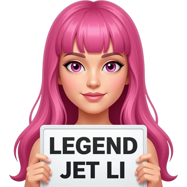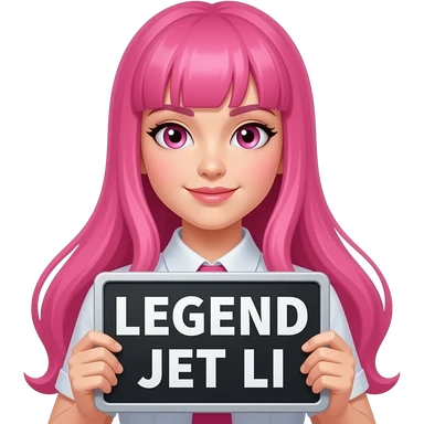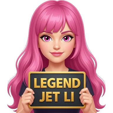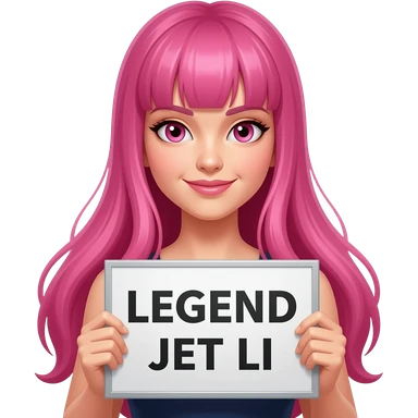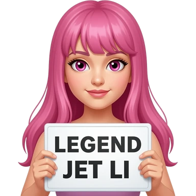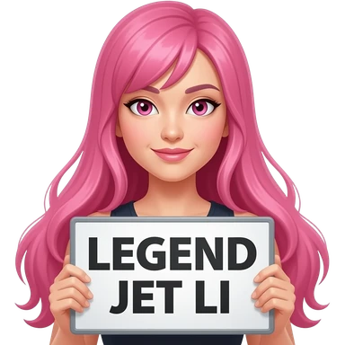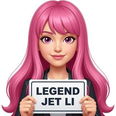 sexy girl with long pink hair and pink eyes holding LEGEND JET LI sign emoji