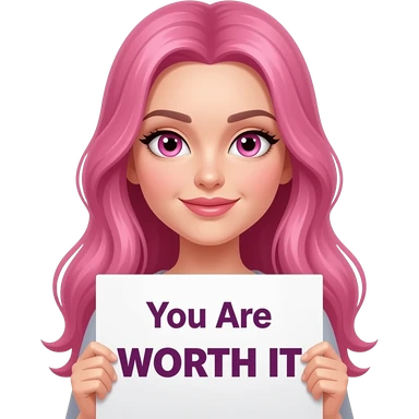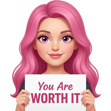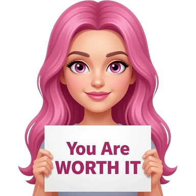 sexy girl with long pink hair and pink eyes holding You Are WORTH IT sign emoji