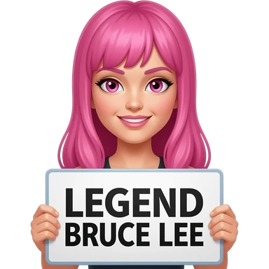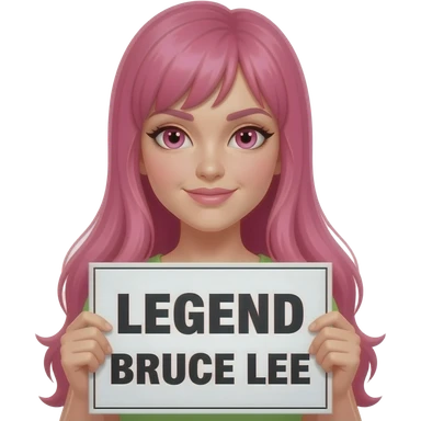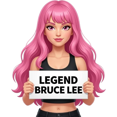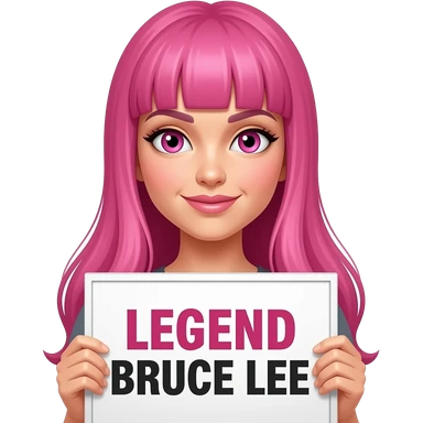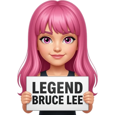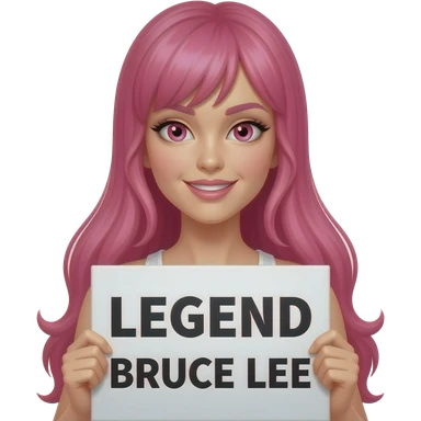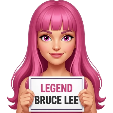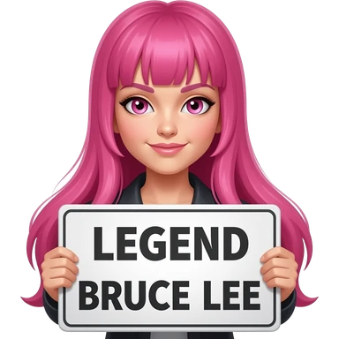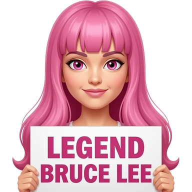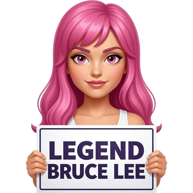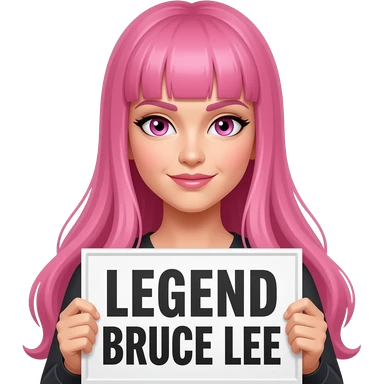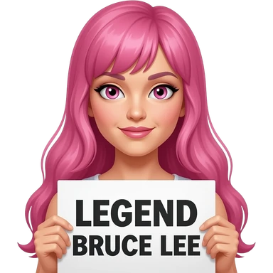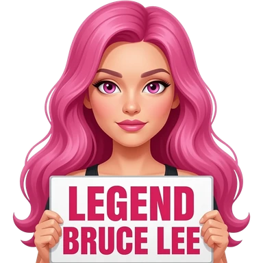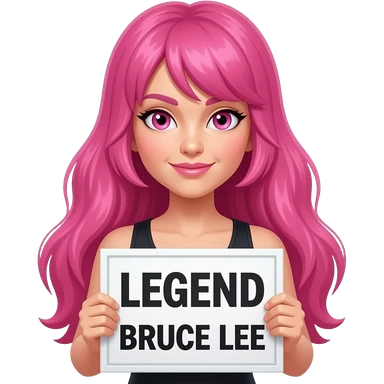 sexy girl with long pink hair and pink eyes holding LEGEND BRUCE LEE sign emoji