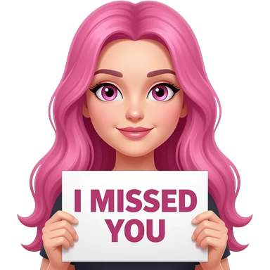 sexy girl with long pink hair and pink eyes holding I MISSED YOU sign emoji