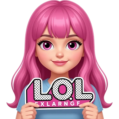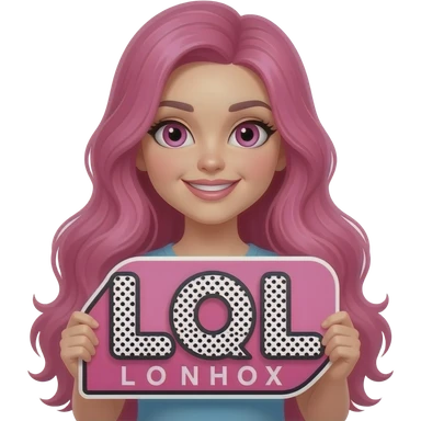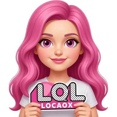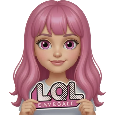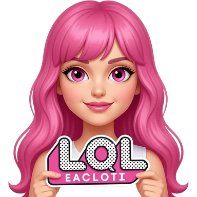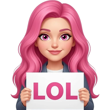 sexy girl with long pink hair and pink eyes holding L O L sign emoji