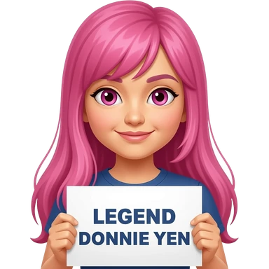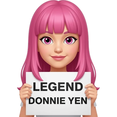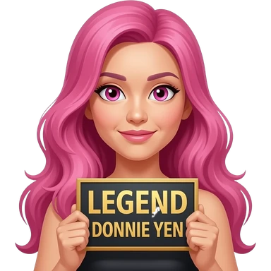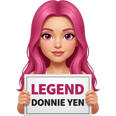 sexy girl with long pink hair and pink eyes holding LEGEND DONNIE YEN sign emoji