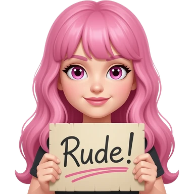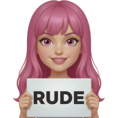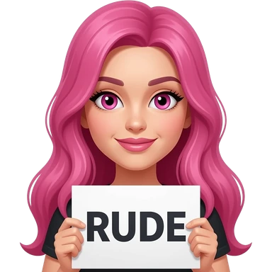 sexy girl with long pink hair and pink eyes holding RUDE... sign emoji