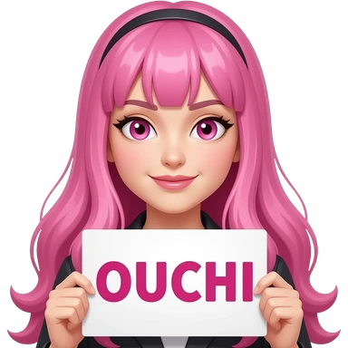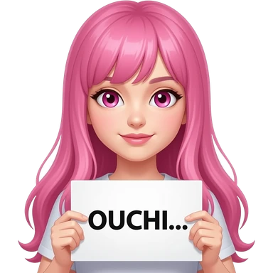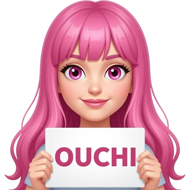 sexy girl with long pink hair and pink eyes holding OUCHI... sign emoji