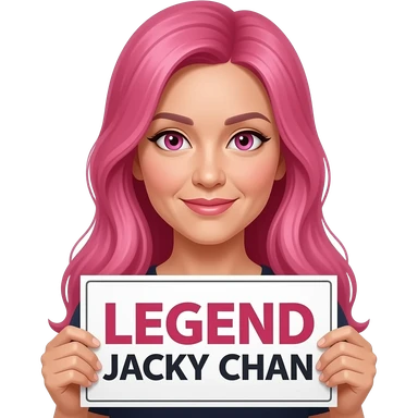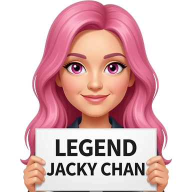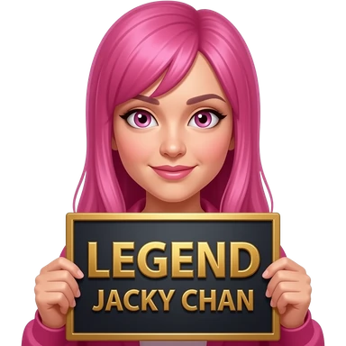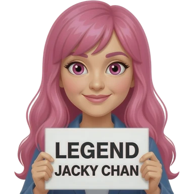 sexy girl with long pink hair and pink eyes holding LEGEND JACKY CHAN sign emoji