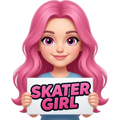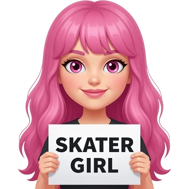sexy girl with long pink hair and pink eyes holding SKATER GIRL sign emoji