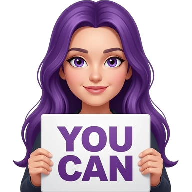 sexy girl with long purple hair and purple eyes holding YOU CAN sign emoji