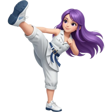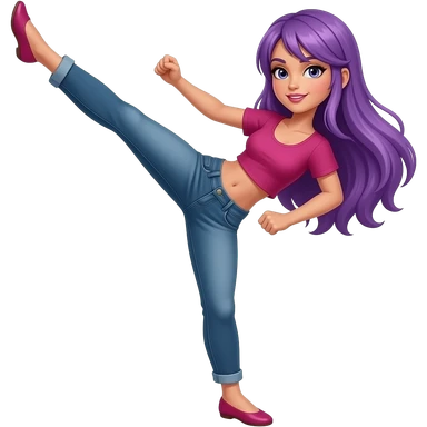 sexy girl with long purple hair is kicking emoji