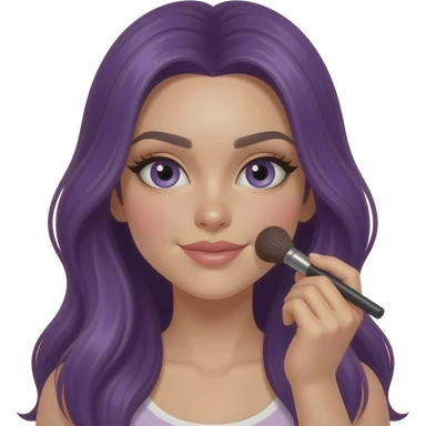 sexy girl with long purple hair is doing her makeup emoji