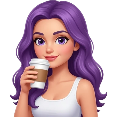 sexy girl with long purple hair is drinking coffee emoji