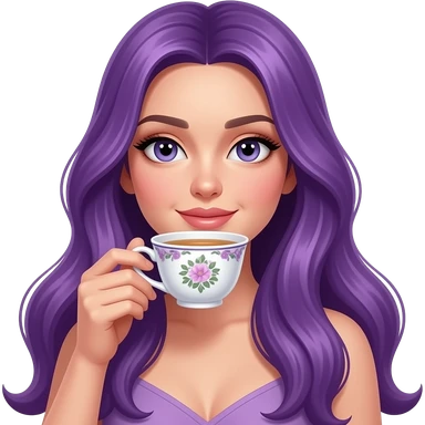 sexy girl with long purple hair is drinking tea emoji