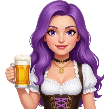 sexy girl with long purple hair and purple eyes wearing a dirndl holding a BIER LOVER sign emoji