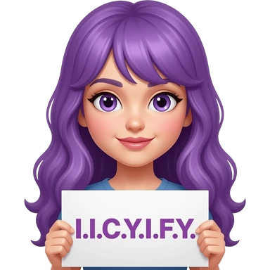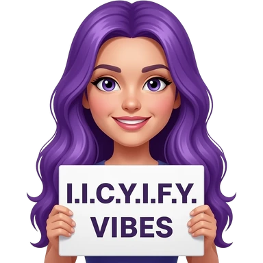 sexy girl with long purple hair holding a I.I.C.Y.I.F.Y. VIBES sign emoji