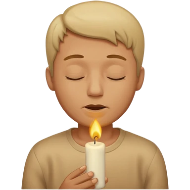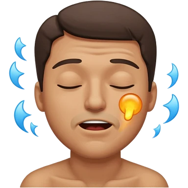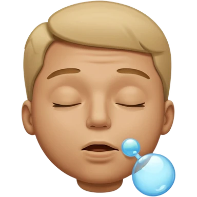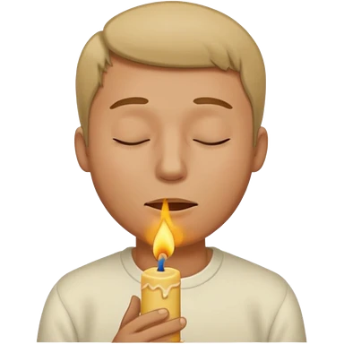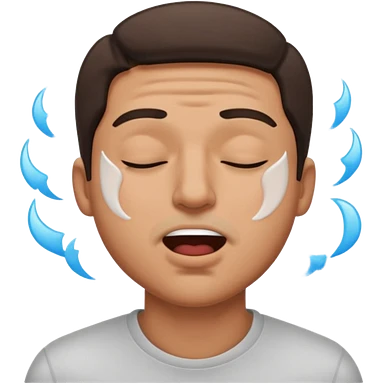 A male with closed eyes but the mouth is o-shaped blowing out emoji