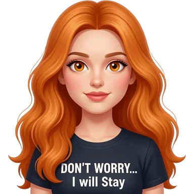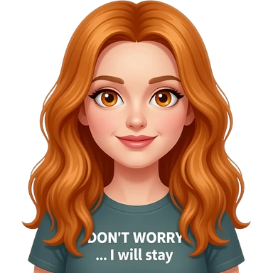 sexy girl with overlong ginger hair and ginger eyes wearing a top with DON'T WORRY... I will stay written on it emoji